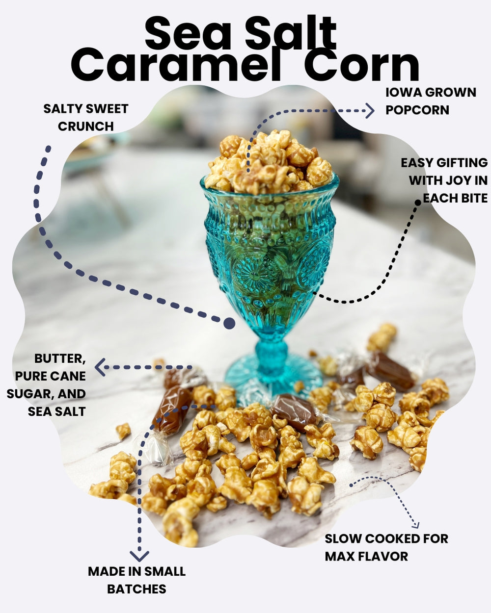 Give the gift of Iowa with our gourmet popcorn collection. Each batch starts with the finest Iowa-grown popcorn kernels, perfectly popped and then lavishly coated in our signature, handcrafted chocolate and caramel. This collection is an homage to our Midwestern roots, blending traditional craftsmanship with gourmet flair.